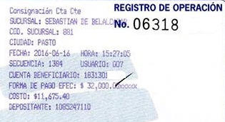 Según nuestro corresponsal en línea, Carlos A. Ramírez (caramirezdo@gmail.com), la operación registrada en este recibo de consignación del Banco de Colombia, por 32.000 pesos, costó 11.675,40.